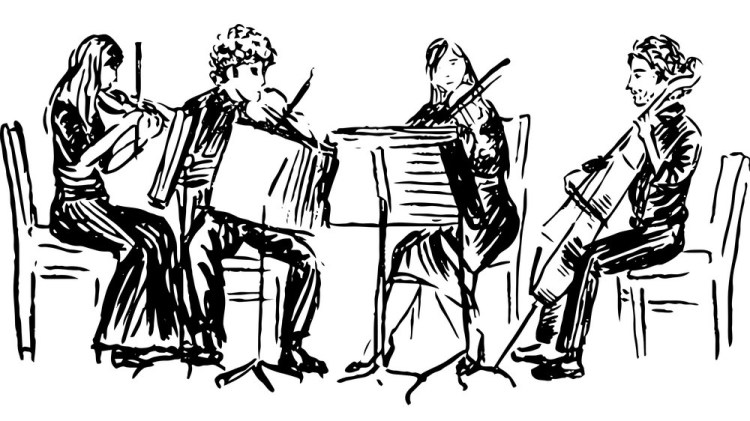 其實,只要是任何四把弦樂器的組合都能被稱為「弦樂四重奏」,但實際上在音樂裡提到的「弦樂四重奏 String Quartet」,就是「第一小提琴、第二小提琴、中提琴及大提琴」的演出組合。