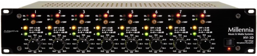 這台應該是弦樂錄音上最常被使用的Pre了,聲音紮實溫暖,不刺耳,然後是刻度旋鈕,一格1.5dB,很好調整到你要的Gain,有130V,可以接需要吃130V的麥克風,不過Pre本身沒有Pad,所以若要拿來錄鼓組或是瞬間大音壓的樂器會比較吃力。