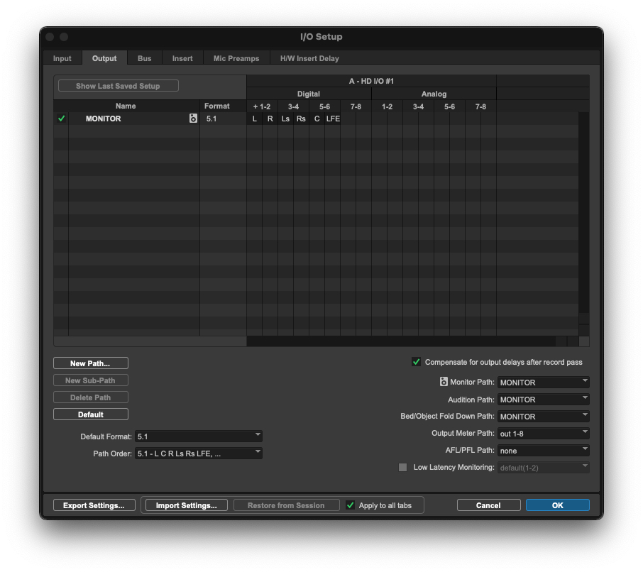 打開以後,因為我都是ITB混音,所以Output那欄,我只留一個Monitor做監聽用,其餘通通砍掉