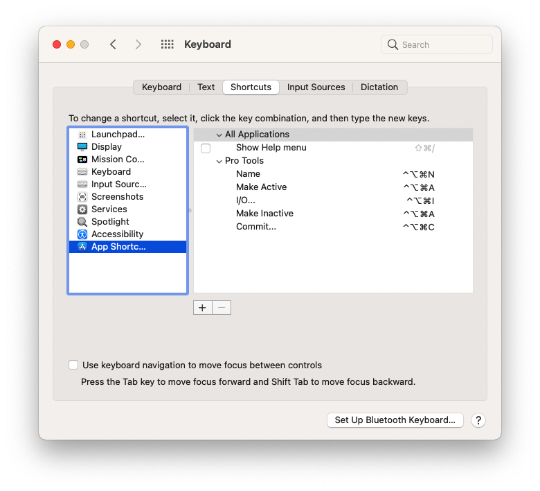 去最下面的App Shortcuts,按+選Pro Tools,然後打入「I/O… 」(名字一定要完全一樣),接著選你想要自己設定的熱鍵,我是三蓮花+I,要設什麼自己搞,搞好後,就可以先打開Note,來想想自己的混音規劃並且筆記了。