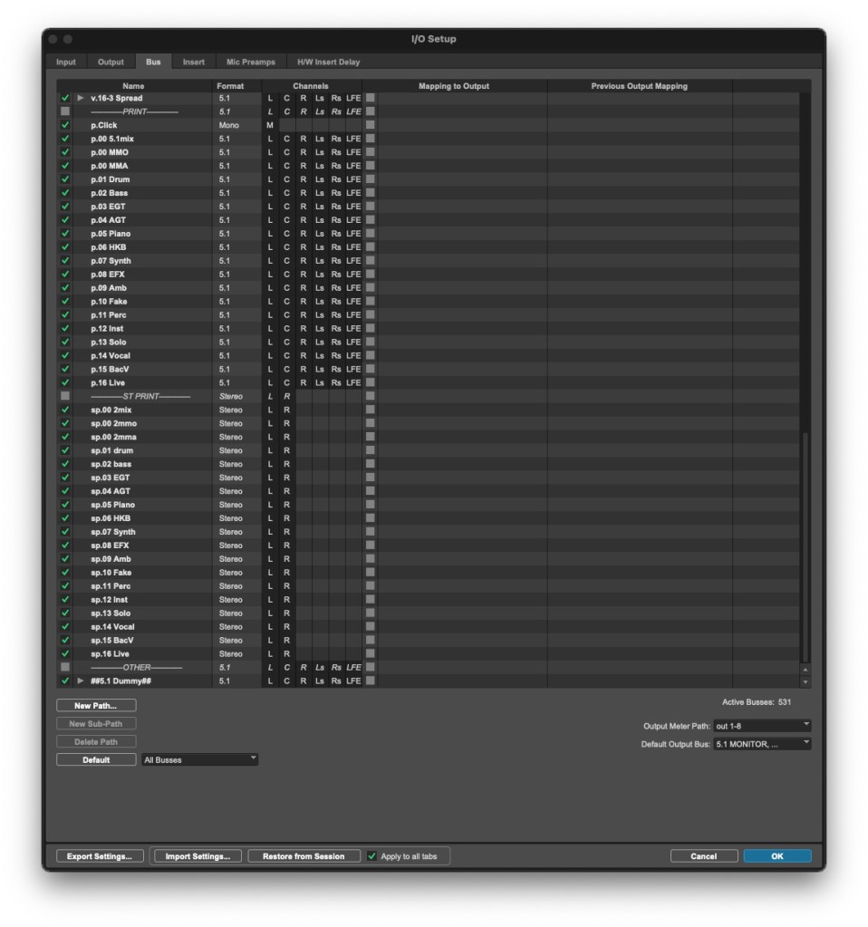 再來,我這邊有ST Print,因為這個Session我是開5.1,所以在做完5.1之後,我還需要做Stereo的Stem,所以當然也需要先把Stereo Print Bus設好。